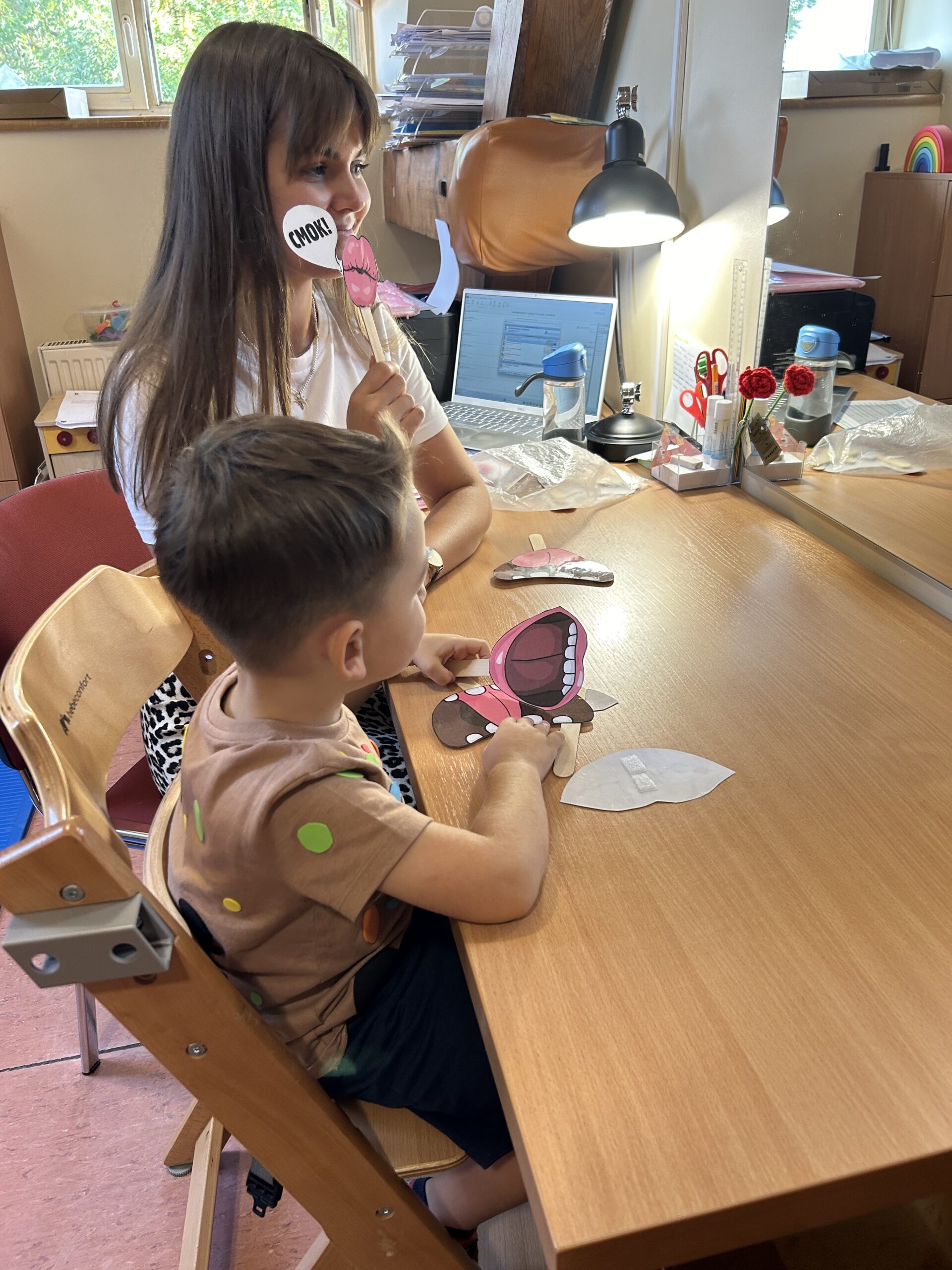 - terapie logopedyczne obejmują m.in.: diagnozę logopedyczną, masaże logopedyczne, ćwiczenia artykulacyjne, słownikowe, stymulację mowy werbalnej, korekcję głosek nieprawidłowo realizowanych, ćwiczenia percepcji słuchowej, trening jedzenia, elementy metody werbo- tonalnej, elementy logorytmiki,